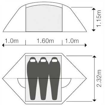 Für zwei Personen bietet das Venus III Extreme 3-Personen Zelt von Exped sehr viel Raum, aber auch mit drei Personen schläft es sich auf der 230 x 160 cm großen Liegefläche ausgesprochen komfortabel. Durch je einen Eingang und eine 100 cm tiefe Apsis zu jeder Längsseite lässt sich das Zelt beim Trekking und auf Radreisen vielseitig nutzen. Dabei steht auch für Schuhe, Rucksäcke und Gepäck immer eine Menge Platz zur Verfügung.