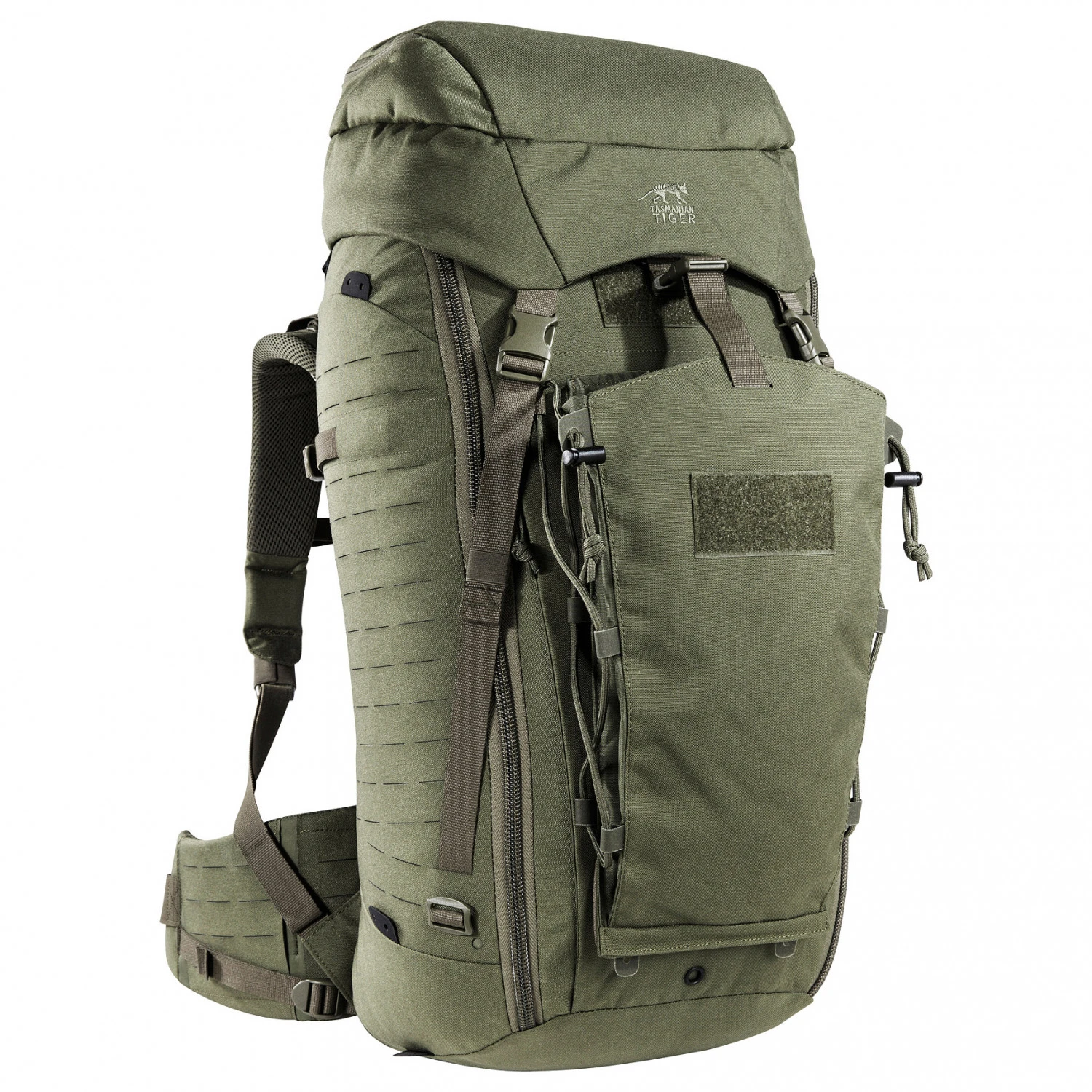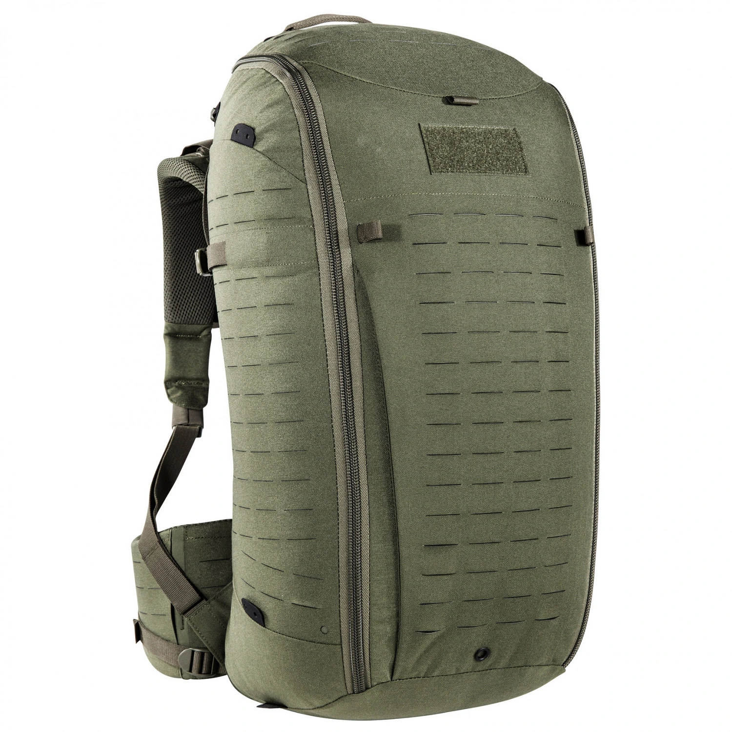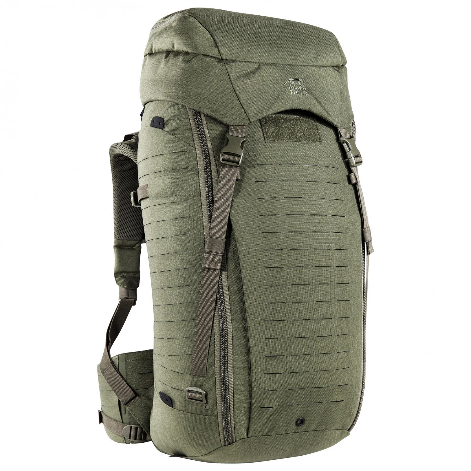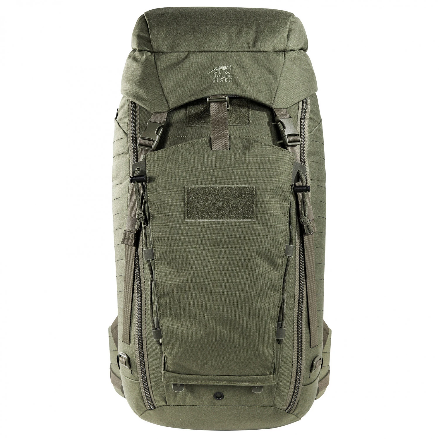 Der vollausgestattete Rucksack verfügt über einen Frontzugriff, damit man Zugang zum kompletten Gepäck hat. Der Deckel mit Fach lässt sich in der Höhe verstellen, so dass sich der Rucksack unkompliziert erweitern kann. Dank Molle-System lassen sich weitere Taschen schnell anbringen. Die drei mitgelieferten Klettverschlusstaschen sorgen für mehr Ordnung. Die Fronttasche lässt sich abnehmen und zusammen falten. Innenliegende Kompressionsriemen halten die Ladung stabil. Mit dem robusten Material ist der TT Modular ein langlebiger Partner für Outdoorer mit hohen Ansprüchen und den Einsatz bei taktischen Einsätzen!