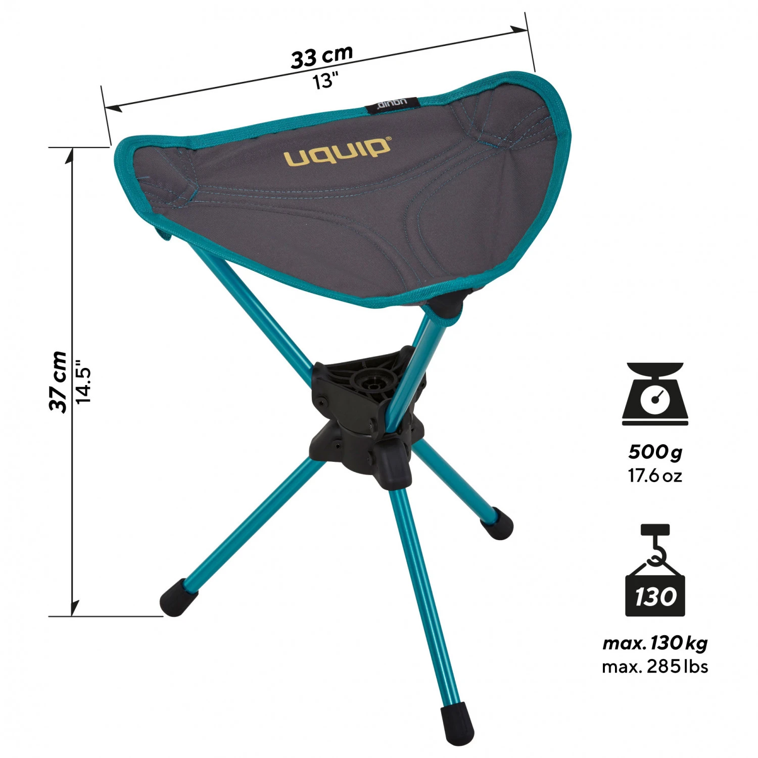 Der Three Sixty Mini Campinghocker von Uquip ist schnell und leicht aufgebaut und direkt einsatzfähig. Das Gestänge besteht aus pulverbeschichtetem Stahl und das Material des Sitzes aus 600D Rip-Stop Polyester. Sehr praktisch und komfortabel ist die 360° Drehfunktion. Darin kannst Du es Dir so richtig gemütlich machen!
